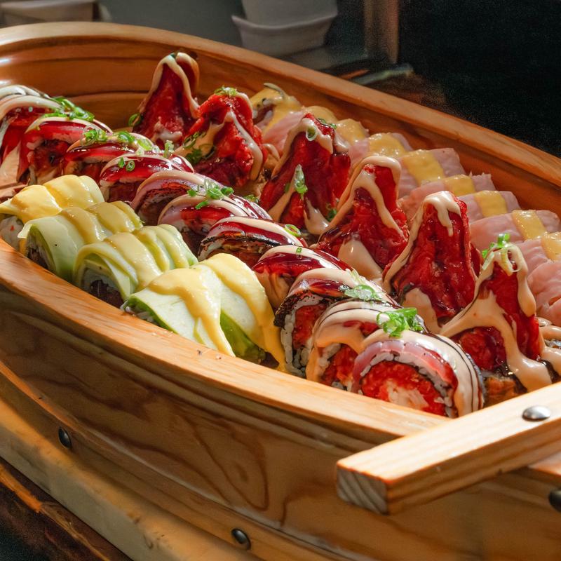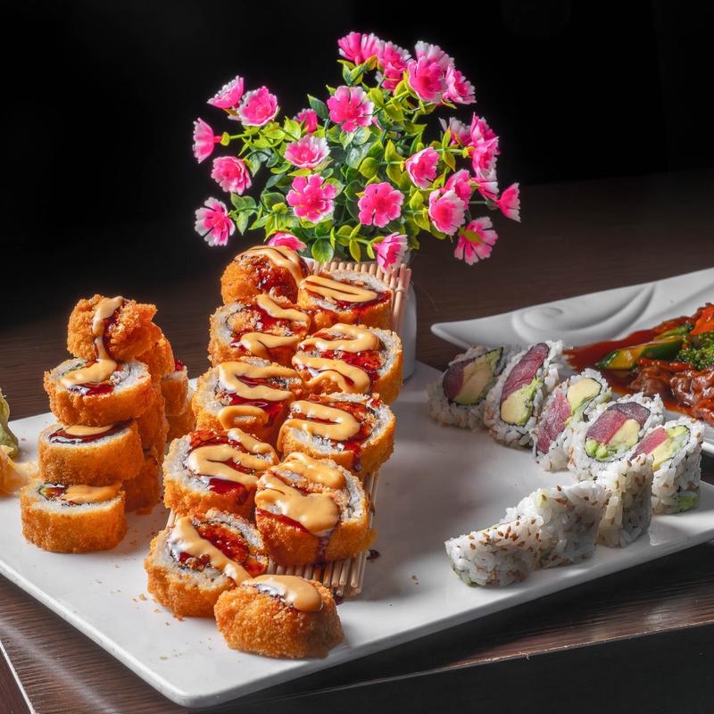 Includes California Roll | Mexico Roll | Golden Philadelphia Roll | Monkey Roll | Angel Hair Roll | Volcano Roll